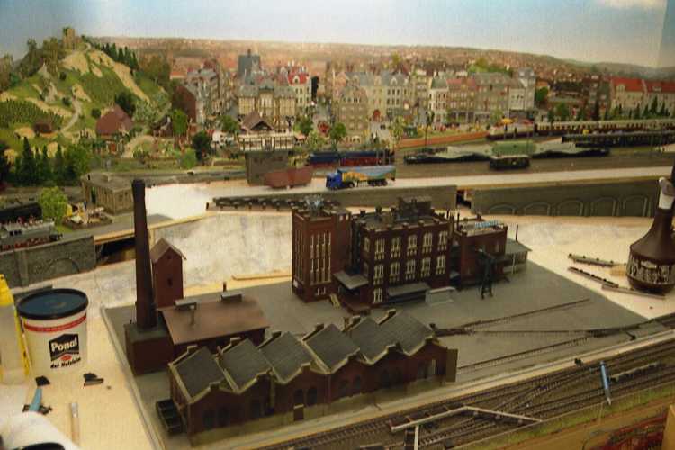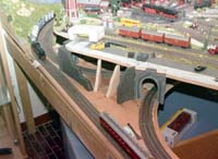 Das gab zwar mächtig viel Platz, aber ehrlich gesagt eigentlich auch wieder zu wenig. Aber immerhin, mit Abstrichen, konnte ich Henschel planen samt eigenem Privat-Gelände mit Villa. Es gab zeichnerisch noch Platz für unsere alte Herkules-Brauerei mit Verladegleis, ein Straße vom oberen Anlagebereich, eine Straßentunnelbaustelle, einen kleinen Haltepunkt, damit die Arbeitnehmer auch verkehrsgünstig und natürlich mit der Bahn ihren Arbeitsplatz erreichen können und noch einen schönen kleinen Badesee. Bei dieser Gelegenheit wurde auch das Gleisdreieck das ist Bereich Ausfahrt Schattenbahnhof/Berg-,/Talfahrt geplant und gestaltet. Auch an
