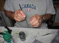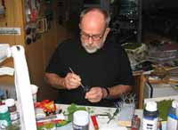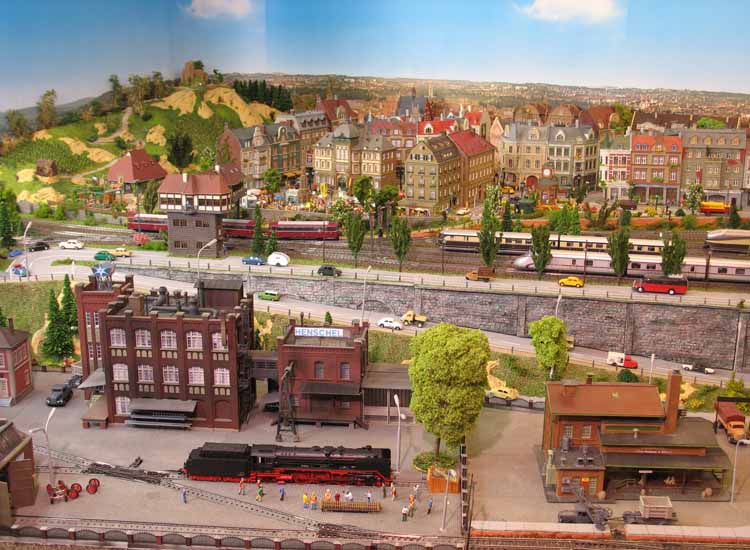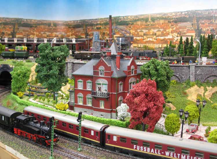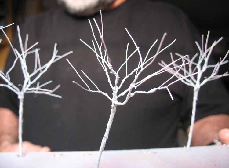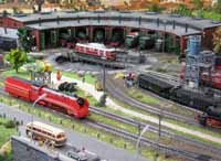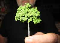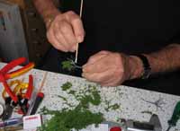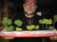 Im diesem Jahr steht die Modelleisenbahn nicht im Mittelpunkt. Sicher gibt es die eine oder andere Bastelei, aber insgeamt gesehen gibt es andere Prioritäten. So besuchen wir die Hollebahn in Hess.Lichtenau, eine tolle öffentlichen Anlage (siehe auch www.modellbahnland-heli.de) und das Altstadt-BW in Dresden. Hierüber werde ich an anderer Stelle berichten. Aber ein Ereignis wirft natürlich seine Schatten voraus. Für Anfang Novemer hat sich der Fotograf Claus Dick vom Märklin-Magazin angesagt. Und da er meine Anlage in ein taghelles Licht taucht, habe ich natürlich mit meiner Kamera auch ein paar Fotos geschossen. Die Jahre 2009 und 2010: auch in diesen Jahren wird die Modelleisenbahn leicht vernachlässigt. Sicher wurde bei schlechtem Wetter auch gefahren und gebaut. Aber es wird halt wenig fotografiert. Denn Im Vordergrund stehen in diesem Jahr Ereignisse beim Vorbild. Allerdings wird mein Wissen in gestalterischer Hinsicht enorm erweitert. Ein Mitglied unseres KIST-NH, Andreas Drühe, unser Spezialist im Geländebau, hat mit uns einen Lehrgang zur Herstellung von Bäumen gemacht. Und den haben wir in Bildern dokomentiert: Zuerst wir ein Drahtgerippe aus feiner Litze, etwa 24 Stück pro Baum verdreht und dann verlötet. Anschließend wird eine Grundierung mittels Sprühdose aufgetragen. Danach wird mit Latexfarbe in der gewünschten Rindenfarbe gestrichen. Anschließend wird mit Produkten von Silhouette oder Heki belaubt. Aber es hat schon noch einige Versuche gebraucht, bis man Baum dazu sagen konnte. Im September diesen Jahres finden in Göppingen mal wieder die Märklin Modellbahntage statt. Wir sind dabei gewesen - dabei sein ist ja schließlich alles - und waren hauptsächlich von den alten großen "Ungetümen" fasziniert: