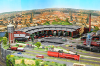 Im Bahnbetriebswerk, da pulsiert das Leben. Da der Kopfbahnhof unermüdlich neue Lokomotiven anfordert, haben die Arbeiter dort alle Hände voll zu tun. Loks entschlacken, mit Wasser, Kohle und Sand versorgen und das Wichtigste bei Schlepptender-Lokomotiven.... drehen. Denn nur bei Vorwärtsfahrt entwickeln die Dampfrösser ihre volle Höchstgeschwindigkeit.