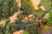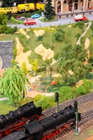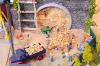 Seit April 1997 sind wir nun schon mit dem Bau der Anlage beschäftigt. Michael war von Anfang an dabei, er war in erster Linie mein großer Gebäudebauermeister. Marcus kam in 2001 dazu. Ihm macht es besonders viel Freude im Gips "zu manschen" und die Landschaft zu gestalten. Da haben wir so manche Stunde gemeinsam gewerkelt. Nicht unerwähnt sollen noch Rolf, Michael (Hardi) und Torsten bleiben, die mir ebenfalls - meist in Ermangelung einer eigenen Anlage - zeitweise mit Rat und Tat zur Seite standen oder noch stehen.