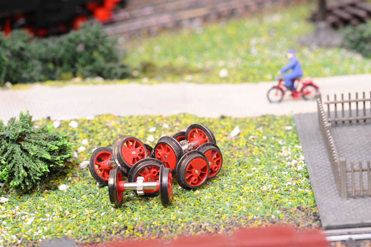 Das letzte Bild schließlich ist die Wiedergabe einer Collage aus defekten Teilen, die mir eine liebe Freundin aus Göppingen geschenkt hat. Sie hat einen Ehrenplatz an der Wand in meinem Eisenbahnkeller.